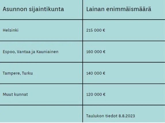 ASP-lainan enimmäismäärä määräytyy asunnon sijainnin mukaan: